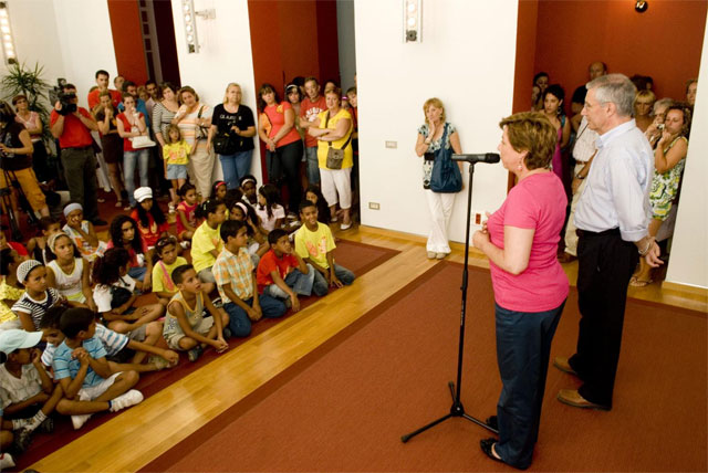 La alcaldesa, Pilar Barreiro, y el concejal de Atención Social, Antonio Calderón, han recibido este mediodía en el Palacio Consistorial, a 40 niños y niñas saharauis, procedentes de los campos de refugiados de Tinduf, que se encuentran de vacaciones en Cartagena, acogidos por 36 familias del municipio.