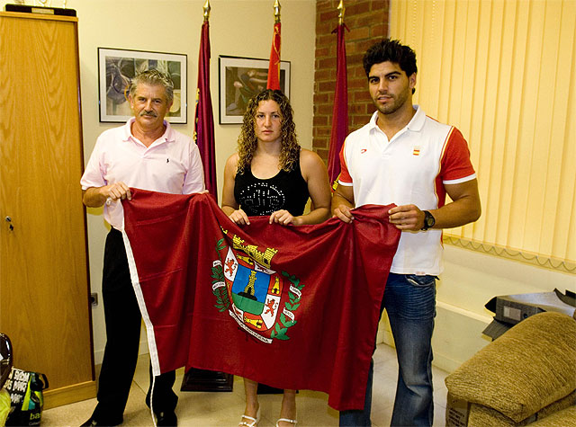 El concejal de Deportes ha hecho entrega a la nadadora de una bandera de Cartagena, para mostrar el apoyo de la ciudad y darle ánimos ante su próxima participación en los Juegos.
