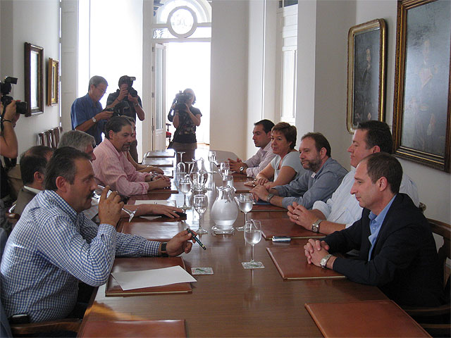El consejero de Empleo y Formación, Constantino Sotoca, acompañado por el director general del Servicio Regional de Empleo y Formación (SEF), Ginés Martínez, se reunió esta mañana con los alcaldes de Cartagena y La Unión, Pilar Barreiro y Francisco Martín, así como con los presidentes de la Cámara de Comercio de Cartagena y de la Confederación de Organizaciones Empresariales de Cartagena (COEC), Mariano Rosique y Diego Illán, respectivamente, para abordar los cauces de colaboración con dichas instituciones para ejecutar el ‘Plan de empleo y formación de la ampliación de la refinería Repsol en el Valle de Escombreras’.