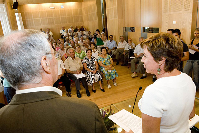 En el acto han estado junto a la alcaldesa, el concejal de Atención Social, Antonio Calderón, el director de Zona de Caja Murcia, Diego Salinas, y la presidenta de la Federación de Clubes de Tercera Edad, María Beteta.