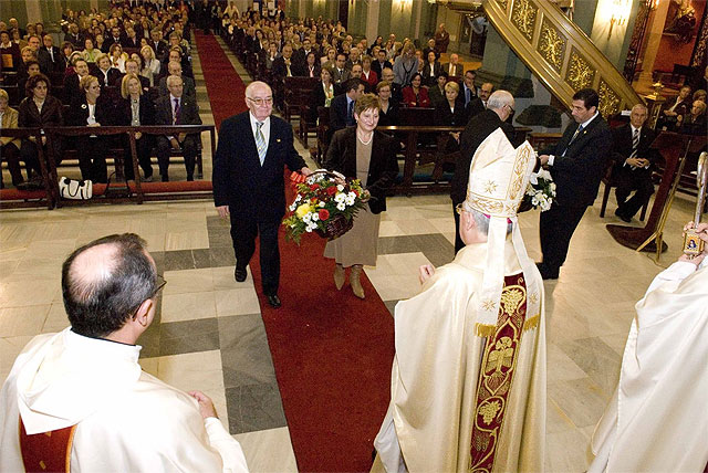 La Corporación Municipal junto a más de sesenta organismo, entidades, asociaciones y cofradías de Cartagena homenajearon a la Virgen del Rosell y a los Cuatro Santos cartageneros, en una multitudinaria ceremonia religiosa, oficiada el sábado por el obispo de Cartagena, Juan Antonio Reig Pla, en la iglesia de Santa María.