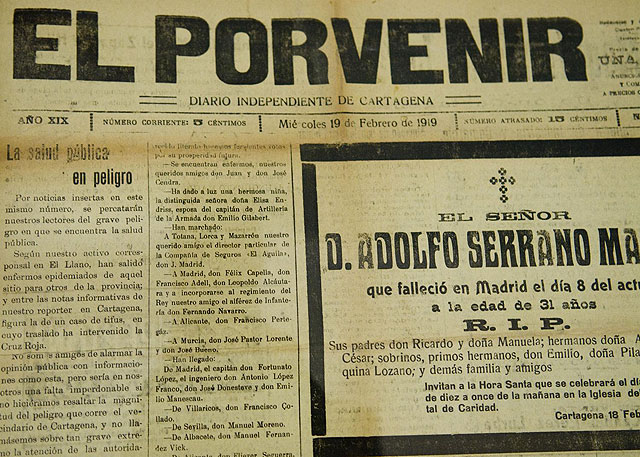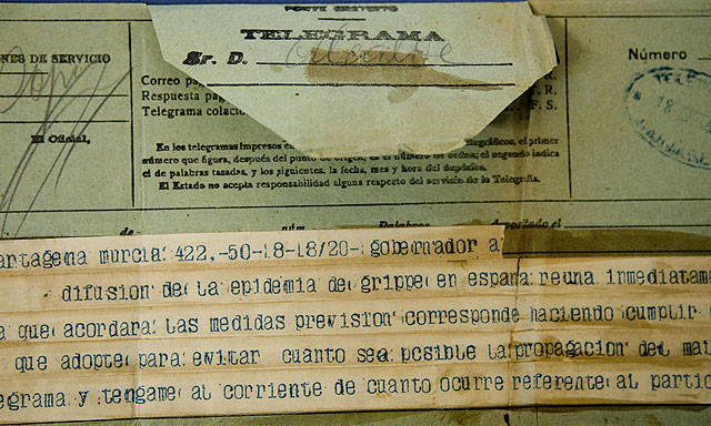 Con motivo de este aniversario, el Archivo Municipal de Cartagena presenta una pequeña exposición, con documentación procedente de sus fondos y alguna aportación particular. En ella podrán verse periódicos de la época, publicaciones, algún plano de la ciudad datado de algunos años antes de la llegada de este 'gripe', así como telegramas y otros documentos.