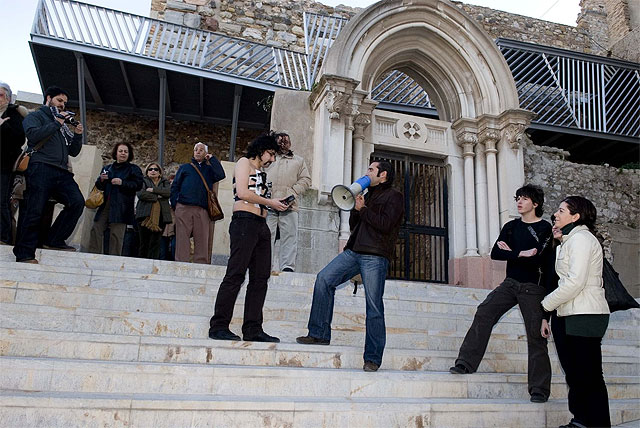 Por ello, la Consejería de Cultura y Turismo y la Concejalía de Cultura del Ayuntamiento de Cartagena hicieron el un llamamiento a los colectivos juveniles, artísticos y, en general, a todos los interesados en las acciones de dinamización ciudadana para que participaran en la performance que tuvo lugar el pasado sábado en la ciudad portuaria, convocatoria que fue muy bien acogida.