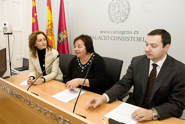 Para dar a conocer los primeros contenidos generados dentro del proyecto 'Carthago Nova. El esplendor de una era', se han dado cita ante los medios de comunicación la concejala de Cultura del Ayuntamiento de Cartagena, Rosario Montero, el Director General de Telecomunicaciones y Sociedad de la Información, Diego Pedro García, y la gerente de Cartagena Puerto de Culturas, Agustina Martínez.