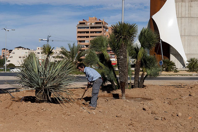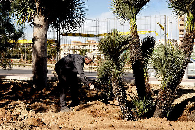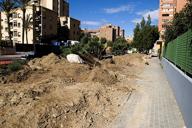 Operarios de una empresa especializada en transplantes, ha traslado durante estos días diversos ejemplares de palmitos, dragos, cactus y tetraclinis articulata, desde su anterior ubicación en la calle Ángel Bruna (a la entrada del Parque Infantil de Tráfico), hasta su nuevo emplazamiento en una nueva zona verde y de aparcamientos que se está creando a la espaldas del antiguo colegio Carmen Conde, en las inmediaciones de la glorieta de Severo Ochoa.