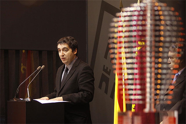 El consejero de Cultura y Turismo, Pedro Alberto Cruz; la alcaldesa de Cartagena Pilar Barreiro; el presidente territorial de Caja Mediterráneo, Ángel Martínez, y el director de marketing del grupo Santa Mónica, encargado de la organización del circuito Audi MedCup, Fernando Iñigo, han presentado hoy en el pabellón de la Región de Murcia en la Feria Internacional de Turismo (Fitur) la sede del circuito de vela hasta 2010. Este evento deportivo, considerado uno de los más prestigiosos dentro del sector náutico, tendrá lugar en Cartagena.