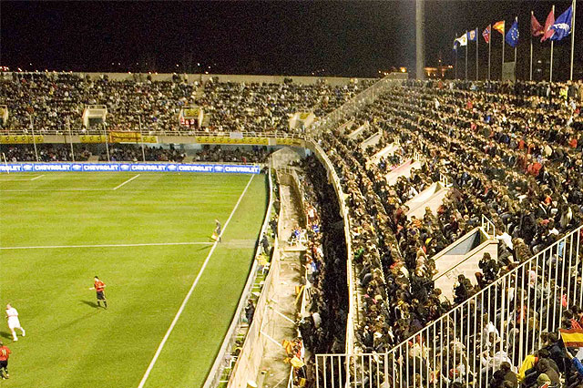 Ya por la tarde, el ambiente futbolero se hizo notar desde primera hora en los alrededores del estadio y luego, ya en el interior, con las gradas llenas y Manolo el del bombo animando a la afición.