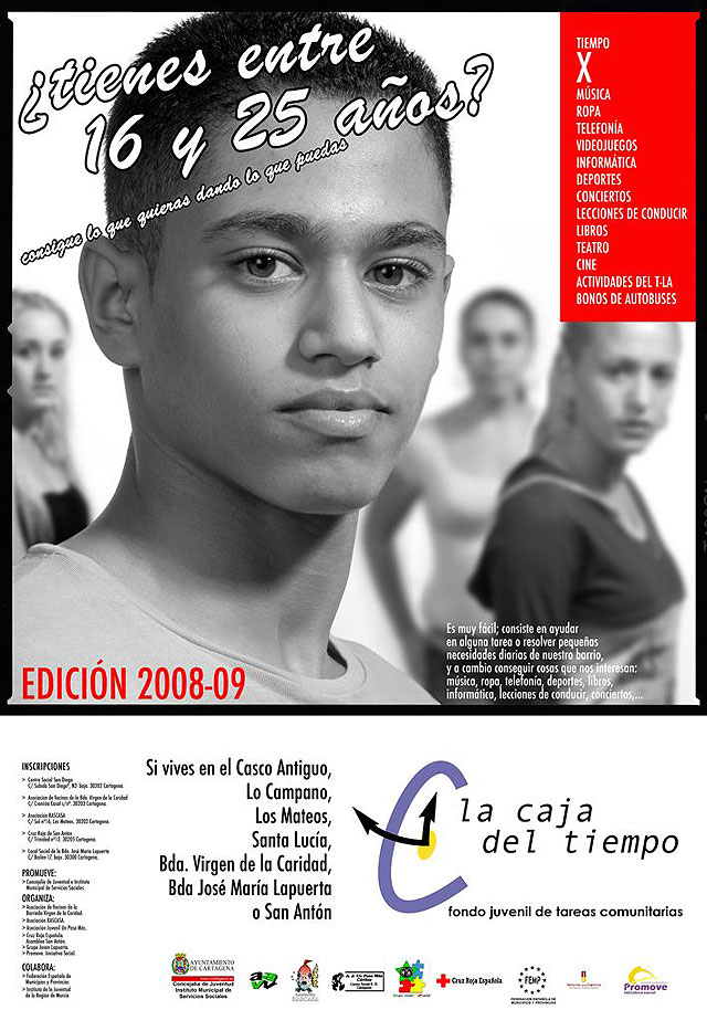 Fomentar la integración de los jóvenes en sus barrios, principalmente las áreas del municipio con dificultades socioeconómicas, es el principal objetivo del proyecto La Caja del Tiempo, que este año celebra su sexta edición y que es fruto de la colaboración entre las Concejalías de Juventud y Atención Social del Ayuntamiento de Cartagena.