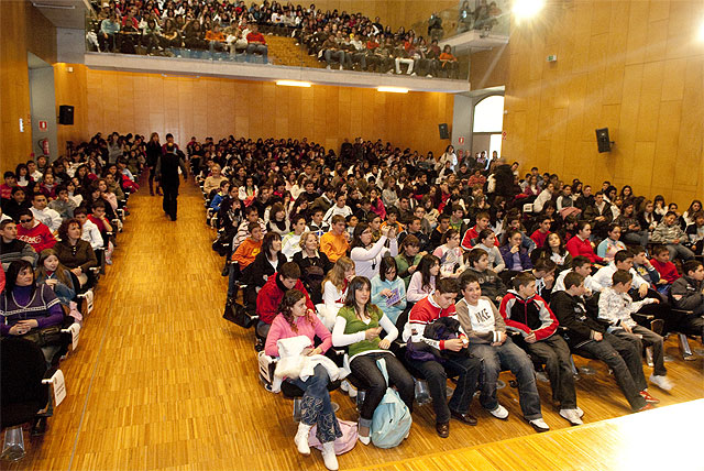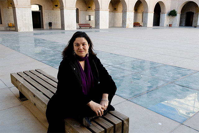 La escritora Care Santos ha visitado esta mañana Cartagena para realizar varios encuentros con los cientos de lectores inscritos en el Premio Hache, primero en el IES Los Molinos, y posteriormente, en el Campus Muralla del Mar de la UPCT.