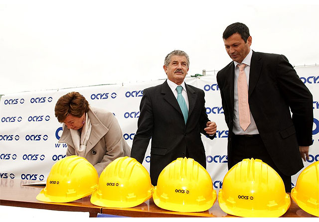 La alcaldesa ha colocado hoy la primera piedra de unas instalaciones gemelas a las que ya se llevan a cabo en La Palma, fruto del Plan de Instalaciones Deportivas financiadas por Ayuntamiento y Comunidad Autónoma