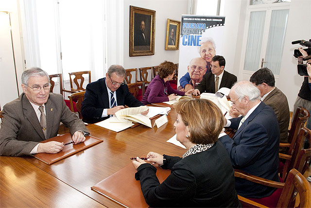 Esta mañana, el consejero de Política Social, Joaquín Bascuñana, ha firmado, junto a la alcaldesa de Cartagena Pilar Barreiro y los representantes de los ayuntamientos de Águilas, Molina de Segura, Lorca y San Javier un nuevo convenio para llevar a cabo la segunda edición de este programa 'Mayores de Cine' en colaboración con las empresas cinematográficas y la Obra Social de La Caixa, gracias al que los mayores de 65 años podrán acudir al cine todos los martes del año, excepto festivos, a precio reducido.