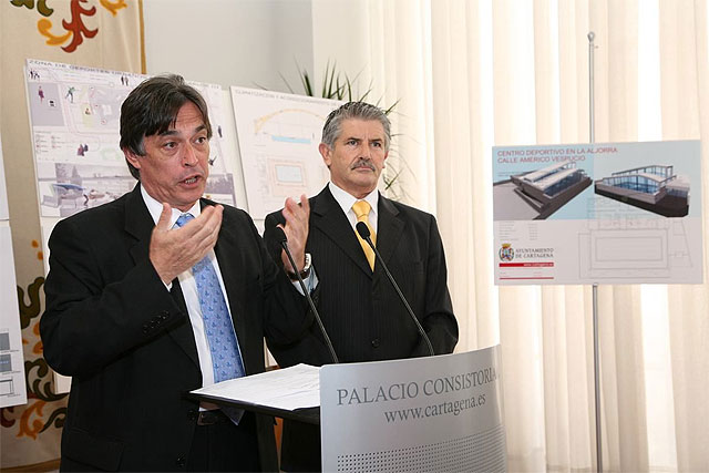 El concejal de Infraestructuras, José Vicente Albaladejo, y el de Deportes, Alonso Gómez, han presentado hoy las 14 actuaciones que se van a llevar a cabo este año en cuanto a proyectos de instalaciones deportivas, obras que van ampliar la red de estas instalaciones municipales en barrios y diputaciones, y que van a suponer el 14,2 por ciento de la inversión del Plan E.