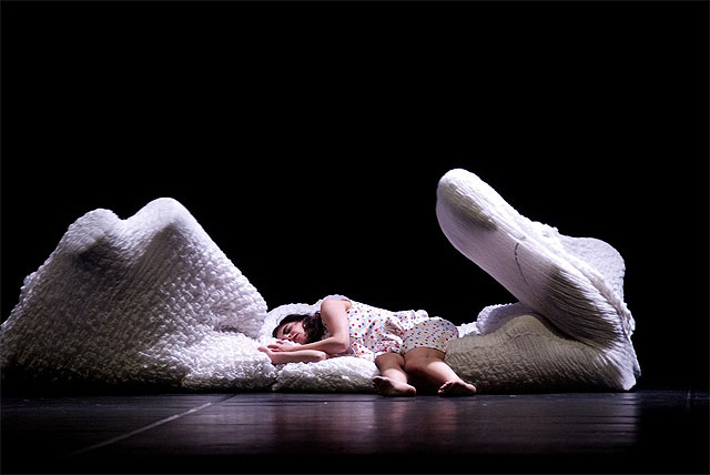 Flexelf es la nueva creación de Àngels Margarit para todos los públicos. El espectáculo nace de la palabra y la palabra flexelf nace del movimiento de un punto que se convierte en línea, se enrosca, se refleja y se repite. Flexelf nos habla de la escritura del cuerpo en el espacio, caligrafía efímera de lenguas exóticas y geometrías juguetonas. Todo lo que hay en flexelf se mueve, se dobla o se arruga; cada forma se transforma e invita a viajar, a descubrir que no todo es lo que parece o a inventar qué parece lo que vemos. Flexelf es una palabra flexible y reversible que estiramos para desplegar historias plisadas y arrugadas, sorpresas y secretos, en un tiempo elástico y subjetivo. En flexelf el cuerpo y el movimiento son esenciales, pero en diálogo con materiales diversos que se integran indivisiblemente en toda la creación: vestuarios escultura, objetos que bailan, personajes textiles y domésticos, juguetes, músicas, sonidos, imágenes que nos engañan, l uz...