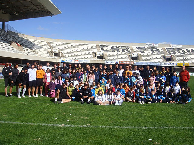 El programa de Acercamiento al Deporte de Élite (ADE) de la Concejalía de Deportes del Ayuntamiento de Cartagena continúa, tras las vacaciones de Semana Santa, con su programación de actividades destinadas a escolares cartageneros, como fue el caso de la visita que el pasado viernes realizaron alumnos del Colegio Público Virgen del Carmen al estadio municipal Cartagonova, aprovechando para asistir a uno de los entrenamientos del Cartagena F.C.