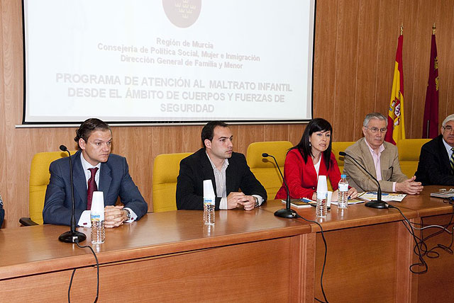La directora general de Familia y Menor de la Consejeía de Política Social, Laura Muñoz, acompañada de los concejales de Seguridad y de Servicios Sociales, Javier Herrero, y Antonio Calderón, ha inaugurado hoy en Cartagena una jornadas sobre Maltrato Infantil, dirigidas a miembros de la fuerzas y cuerpos de seguridad, en las que participan 70 policías locales.