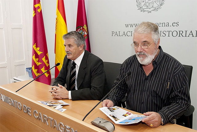 El concejal de Deportes, Alonso Gómez, junto a Pedro Caparrós, han presentado hoy en el Palacio Consistorial el número cien de la revista Cartagena Cinco de Fútbol Sala, que edita Caparrós, ejemplar que se ha presentado en color.