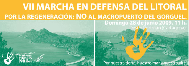Como culminación a todas estas actividades propuestas, la Coordinadora "La Región de Murcia No Se Vende" ha convocado la "VII Marcha en defensa del Litoral" que este año se centra en denunciar el "insostenible y disparatado" proyecto de macropuerto en El Gorguel, cuyo promotor es la Autoridad Portuaria de Cartagena, y que de llevarse acabo "provocaría graves e irreparables impactos visuales, socioculturales y medioambientales".