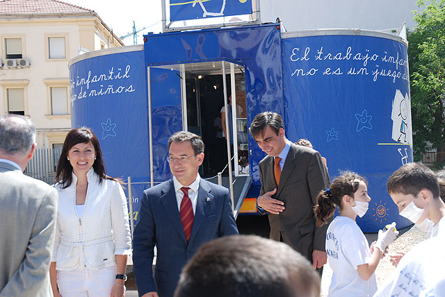 El consejero de Política Social, Mujer e Inmigración, Joaquín Bascuñana, visitó esta mañana en Cartagena el autobús solidario ‘Proniño’ contra la explotación laboral de los menores en Latinoamérica, una iniciativa que se encuentra en su segunda edición y que lleva a cabo la Fundación Telefónica.