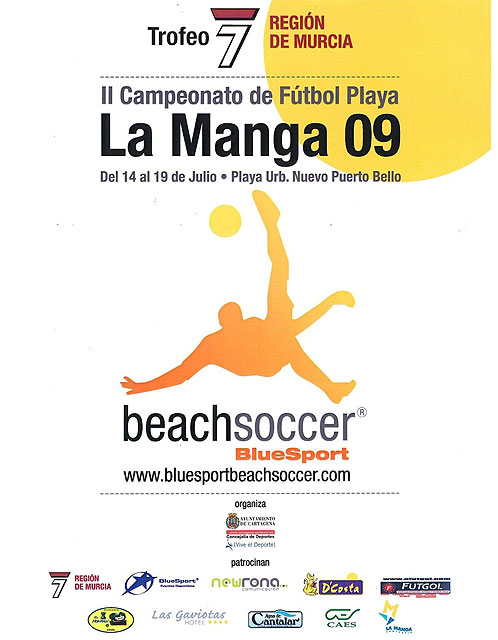 El concejal de Deportes, Alonso Gómez, ha presentado hoy el Campeonato de Fútbol Playa La Manga 09 que este año cumple su segunda edición estrenando lugar de celebración y fechas, de manera que en vez de en agosto se celebrarán del 14 al 19 de julio, y en vez de en la playa de la Gola será en la de la Urbanización Nuevo Puerto Bello, junto a la iglesia.