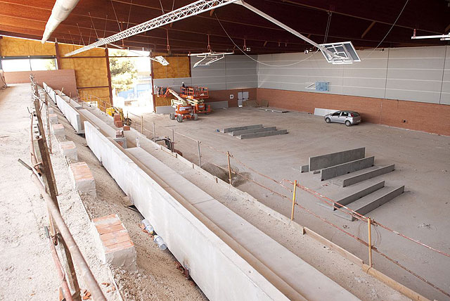Por su parte, el Pabellón de El Albujón, cuya primera piedra se colocó el pasado mes de marzo, está ubicado en unos terrenos municipales junto al colegio Luis Vives y sus características son similares a las del que se construye en La Palma, incluyendo como novedad un gimnasio, además de dos vestuarios colectivos y dos individuales.