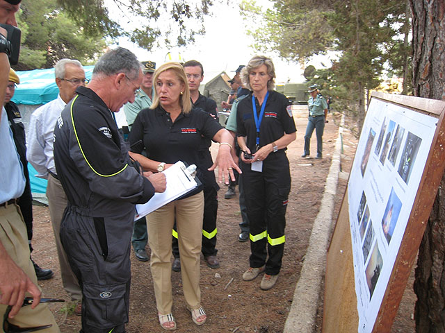 La consejera de Presidencia y Administraciones Públicas, María Pedro Reverte dirigió el operativo desde el puesto de mando avanzado ubicado en el acuartelamiento.