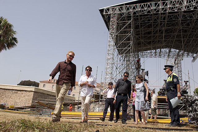 La alcaldesa de Cartagena Pilar Barreiro, junto al consejero de Cultura, Pedro Alberto Cruz y el director de Producción de MTV Network, Paolo Donadio, además del vicealcalde y los concejales de Infraestructuras y Seguridad, han visitado esta mañana el lugar donde se está montando el escenario y toda la infraestructura que rodea al evento musical.
