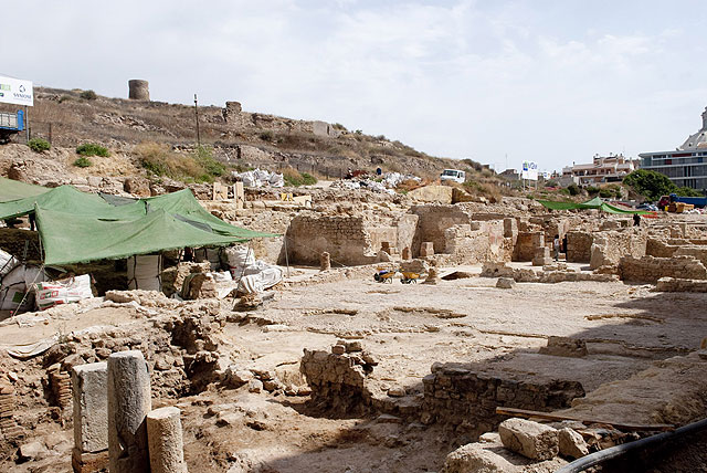 En concreto, el proyecto de cubrición afectará a unos 2.500 metros cuadrados de la ladera meridional del Cerro del Molinete, que han sido excavados durante un año y medio. Según ha explicado José Miguel Noguera, director de las excavaciones, los restos urbanísticos encontrados indican que se trata de una gran ínsula de la ciudad altoimperial de Cartagonova y sus fases posteriores en los siglos II, III y IV, además de un gran barrio de época bizantina. En esta gran ínsula se han documentado dos grandes edificios: unas termas públicas, con una gran palestra; y otro edificio que se articula en torno a un gran atrio, con cuatro grandes aulas, en lo que podría ser un templo o una scola.
