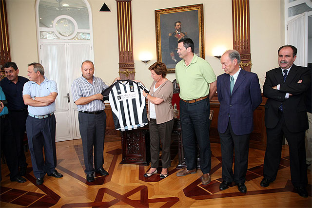F.C. Cartagena ya tiene patrocinador en la nueva indumentaria que llevarán los jugadores en esta nueva temporada. La camiseta ha sido presentada esta mañana por la alcaldesa de Cartagena, Pilar Barreiro, junto el director general de Deportes, Antonio Peñalver, el presidente de la Fundación Caja Murcia, Carlos Egea, el presidente del club, Francisco Gómez, el primer teniente alcalde, Agustín Guillén y el concejal de Deportes Alonso Gómez.
