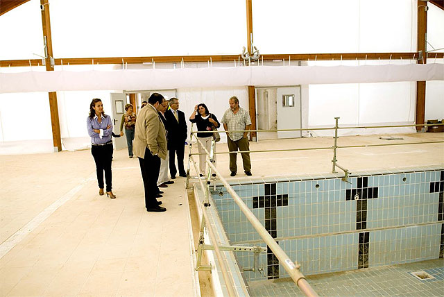 La visita de los concejales, que estuvieron acompañados por la presidenta de la Junta Vecinal, Ginesa Zamora, y la presidenta de la asociación de vecinos, Carolina Palazón, se inició en la piscina cubierta: una obra del Plan E que cuenta con un presupuesto de 1,4 millones de euros y que estará acabada a finales de este año. Como se recordará el proyecto ha consistido en la cubrición con una carpa textil de la antigua piscina municipal, la mejora de sus vestuarios e instalaciones en general y el acondicionamiento y alumbrado del entorno.