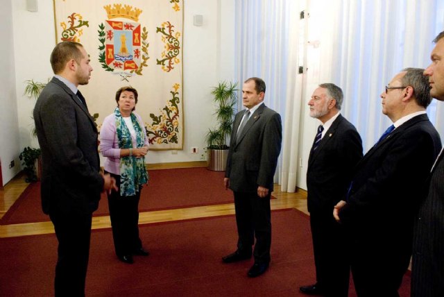 La alcaldesa, Pilar Barreiro, recibió ayer en el Palacio Consistorial, a una delegación integrada por cuatro diputados del parlamento de la región polaca de Lodz, que han viajado a Cartagena para conocer el sistema autonómico español y, más concretamente, el funcionamiento de la Asamblea Regional de Murcia, donde están celebrando varias sesiones de trabajo con el presidente, la mesa y los grupos parlamentarios.
