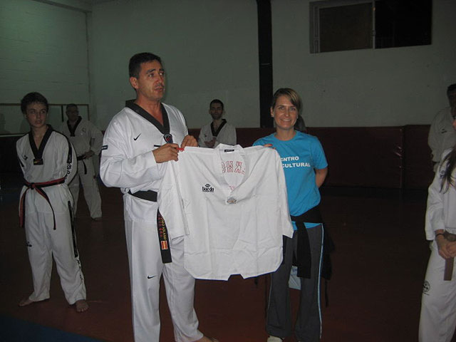 La visita concluyó con la entrega de obsequios, tanto por parte del Club de Artes marciales, que regaló al centro intercultural un Kimono firmado por los alumnos de Taekwondo, como por parte del Centro Intercultural y la Concejalía de Deportes, que también aportó un detalle conmemorativo.