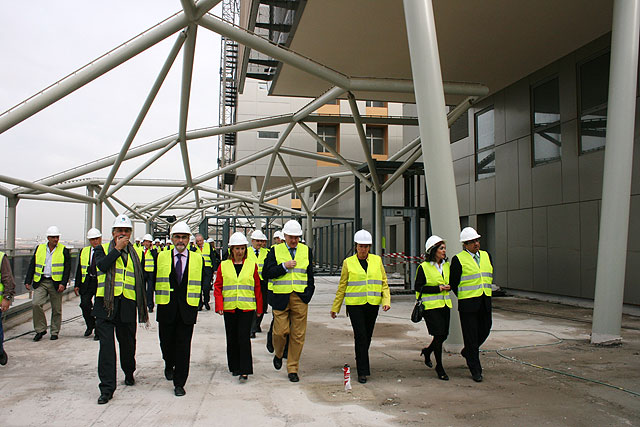 El jefe del Ejecutivo murciano, acompañado por la consejera de Sanidad y Consumo, María Ángeles Palacios, recorrió las obras del nuevo centro sanitario, que ha sido diseñado para atender las necesidades de los 276.759 habitantes de los municipios de Cartagena, Fuente Álamo, Mazarrón y La Unión.