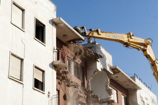 El delegado del Gobierno, Rafael González Tovar, junto al vicealcalde, Agustín Guillén, ha comprobado in situ esta mañana las tareas de demolición, que se prolongarán durante varios días.
