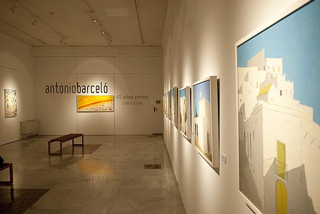 Antonio Barceló expuso por primera vez sus obras en la sala de la Cámara de Comercio de Cartagena en 1969. Hoy hace 40 años que conmemora esa efeméride y con esta exposición, según ha manifestado, no ha querido hacer una antológica sino mostrar su primera y última obra para hacer ver que está en activo y que no se va a jubilar.