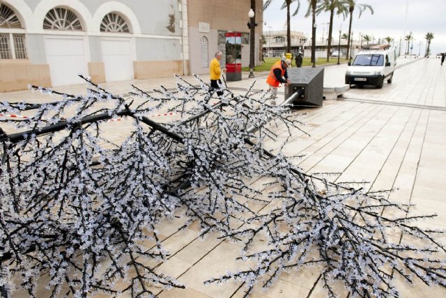Otra incidencia destacada ha sido la caída de uno de los árboles de navidad que adornan la ciudad, en concreto el situado junto al Palacio Consistorial.