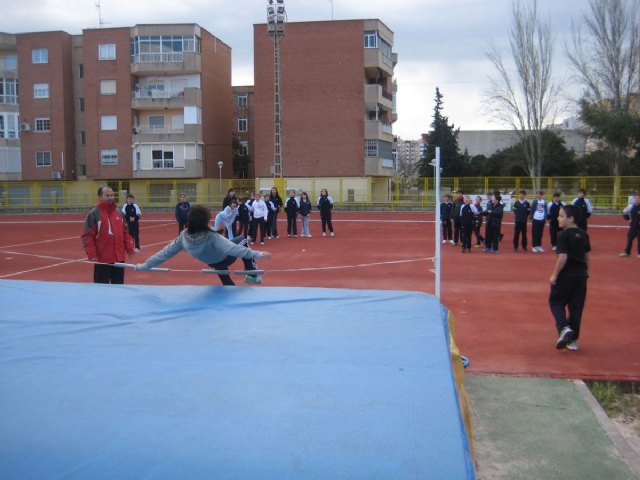 Posteriormente, los atletas pertenecientes al Club Atletismo Cartagena enseñaron a los alumnos la técnica básica de iniciación de las disciplinas de carrera de velocidad, vallas, salto de longitud, salto de altura y lanzamiento de peso.