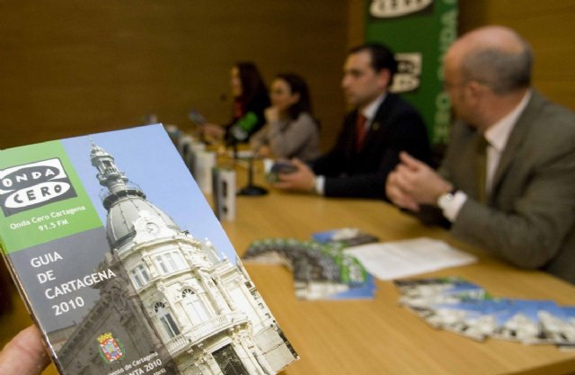 El director de Onda Cero Cartagena, Antonio García Mondéjar, acompañado por el concejal de Turismo, Javier Herrero, presentó ayer la II Guía de Cartagena y su Semana Santa, que se repartirá en distintos lugares de la ciudad y cuenta con una tirada de más de 5.000 ejemplares.