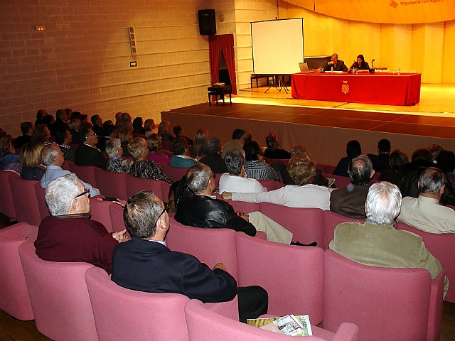 El encargado de impartir la conferencia fue el escritor y pintor cartagenero, residente en Tarragona, Damián Ximénez, y en la misma se proyectaron imágenes de los lugares en los que discurrió la vida de la ilustre académica, además de poder escuchar las palabras de Carmen Conde, grabadas en una cinta, hablando de trovos y del Cante de las Minas.