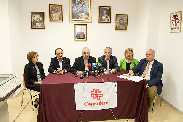 Esta mañana ha presentado este nuevo proyecto, pionero en la ciudad de Cartagena, el concejal de Atención Social, Antonio Calderón junto al representante de Cáritas, el padre Francisco Montesinos, la representante de la Asociación Internacional de Caridad (AIC), Trinidad Navarro y el vicepresidente de la Junta de Cofradías, Tomás Martínez, con el que intentarán paliar las dificultades económicas de las familias necesitadas.
