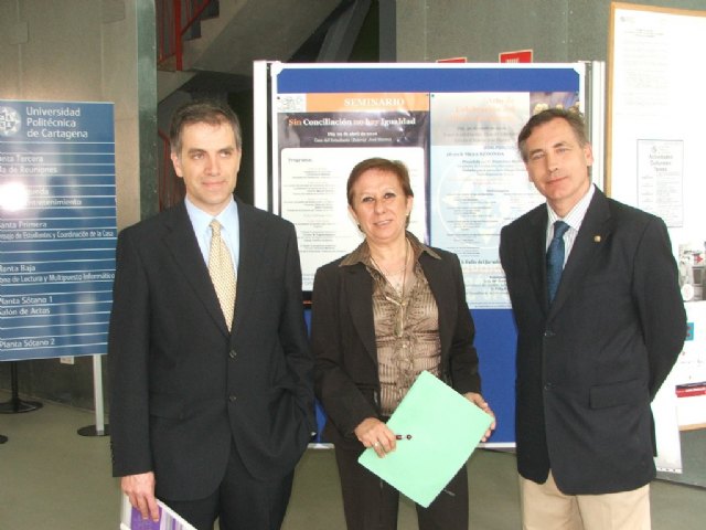 Asimismo, dentro de las actividades organizadas por la Comisión de Igualdad de la UPCT hoy jueves se ha celebrado el seminario “Sin conciliación no hay igualdad” que ha contado con el testimonio de diversos profesionales que han aportado su visión y sus propuestas para avanzar en la conciliación de la vida personal, familiar y laboral y en la igualdad entre hombres y mujeres en todos los ámbitos sociales. Además de abordar una revisión del concepto de conciliación como un término no sólo aplicable a las mujeres, también se han estudiado sus efectos sobre los resultados empresariales y el marco legislativo que lo contempla desde la perspectiva del Derecho del Trabajo.