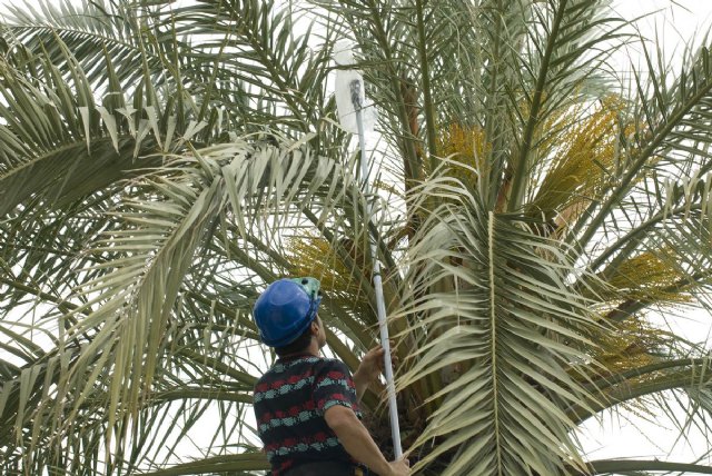 La empresa que realiza las pruebas en Cartagena es la denominada Huerto de Elche, proveniente de la ciudad ilicitana, con amplia experiencia en el tratamiento de palmeras.