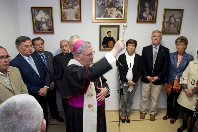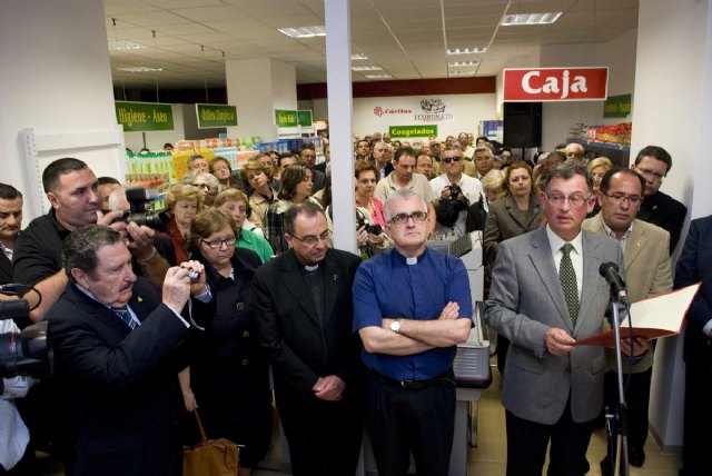 La inauguración de la sede del economato, que está situado en la calle Carlos V, número 4, contó también con la asistencia del obispo de la diócesis de Cartagena, José Manuel Lorca Planes, que, ante la presencia del numeros público que quiso asistir al acto, dio su bendición a las nuevas instalaciones solidarias.