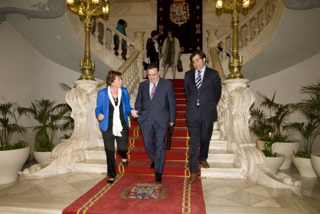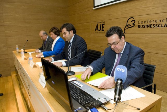 En su intervención el presidente de Enagás ha estado acompañado por el presidente de Cajamurcia, la alcaldesa y el presidente de AJE-Cartagena, Pedro Pablo Hernández.