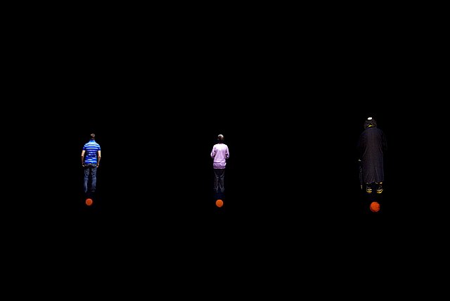 Cortils ha explicado su obra como una instalación concebida como un espacio de reflexión que consta de 9 retratos de personajes fotografiados de espaldas colocados en una sala circular totalmente oscura.