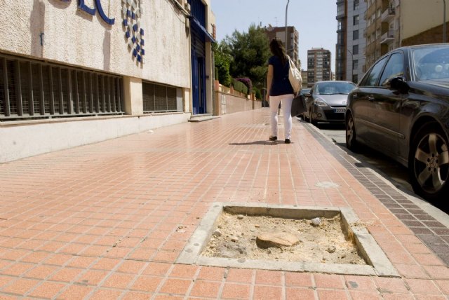 Dada la proximidad de las instalaciones y la poca anchura de las aceras, los árboles no serán repuestos, procediéndose al enlosado definitivo de los alcorques.