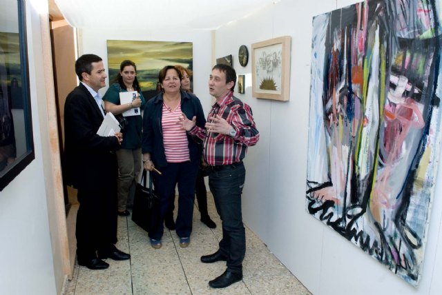 Mucho Más Mayo ha llevado este fin de semana las obras de diez galerías de la región y de otras ciudades a la quinta planta del NH de Cartagena, una muestra que fue inaugurada por el director general de Bienes Culturales y las concejalas de Cultura y Juventud