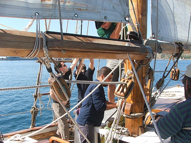 Los alumnos han navegado en embarcaciones de vela latina, tal y como se hacía durante las primeras singladuras en tiempos de los fenicios, y también en una embarcación de vela cangreja, la goleta Buenaventura. Un contramaestre profesional ha instruido en el conocimiento y la fabricación de la jarcia firme y de labor y ha puesto a punto los conocimientos de los alumnos sobre las maniobras marineras.