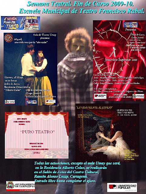 Como ya viene siendo habitual, la Escuela Municipal de Teatro Francisco Rabal ha organizado una muestra de trabajos de fin de curso 2009-10, que se desarrollará a lo largo de la primera semana de junio a cargo de los grupos de alumnos del centro.