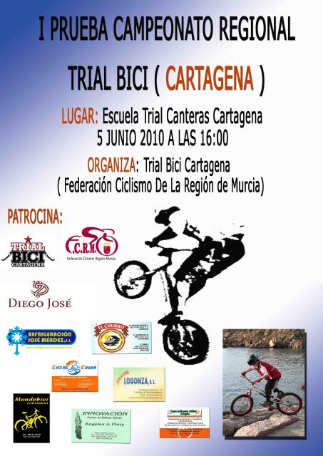 El sábado 5 de junio, a las 16 horas,  tendrá lugar la primera prueba del Campeonato Regional de Trial Bici, en el circuito de la Escuela Trial Canteras de Cartagena.