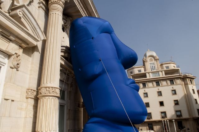 Desde esta semana, el balcón del Palacio Consistorial cuenta con el principal atractivo de la Isla de Pascua, un moái de color azul hinchable. Esta obra fue presentada la semana pasada en el Palacio Molina por el artista Nadín Ospina, uno de los invitados de honor de La Mar de Músicas.